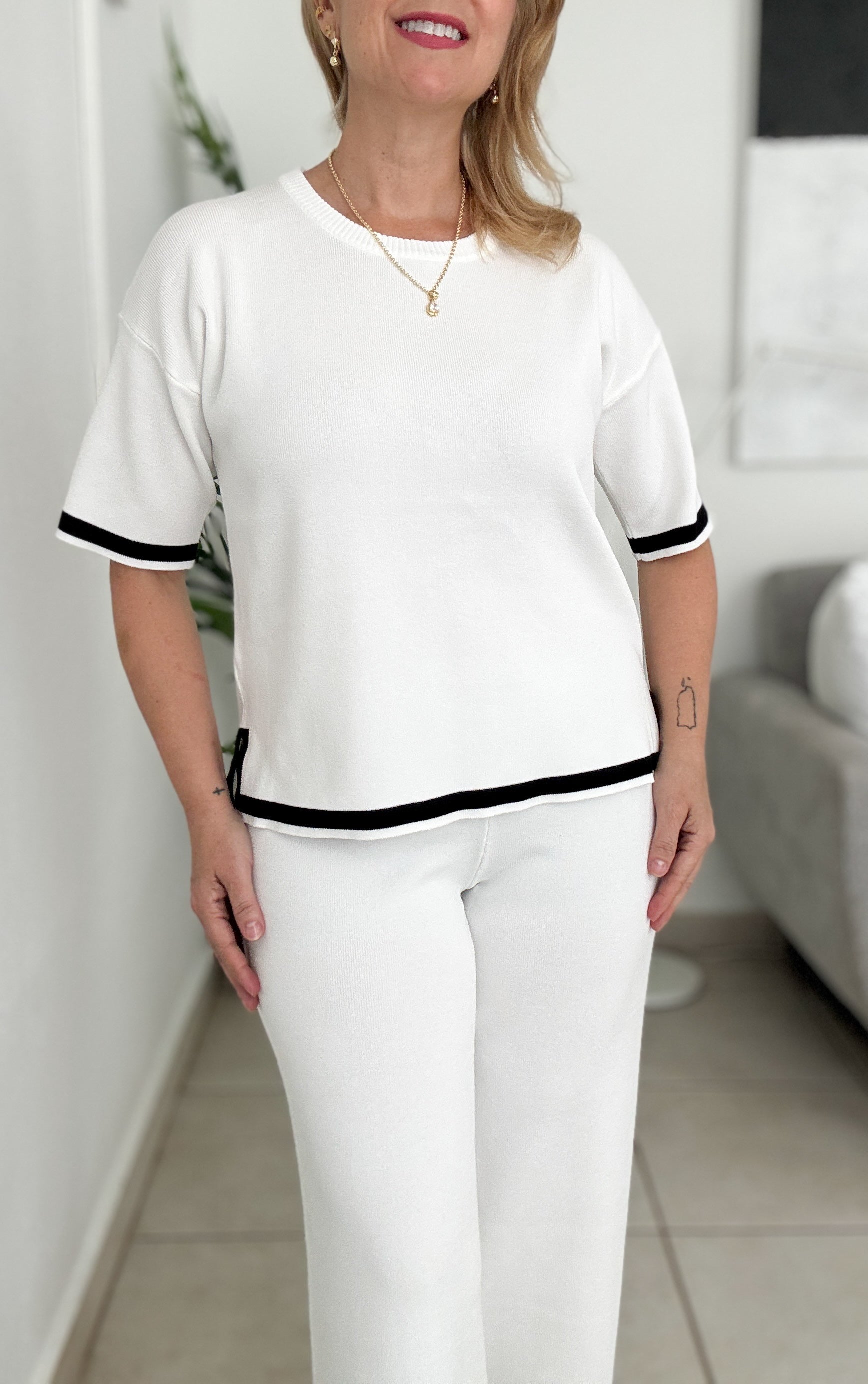 Elevate your style with this sleek white shirt and pants set, accented by bold black edges for a modern, sophisticated look. Perfect for both casual outings and upscale events, it delivers comfort without compromising on elegance.