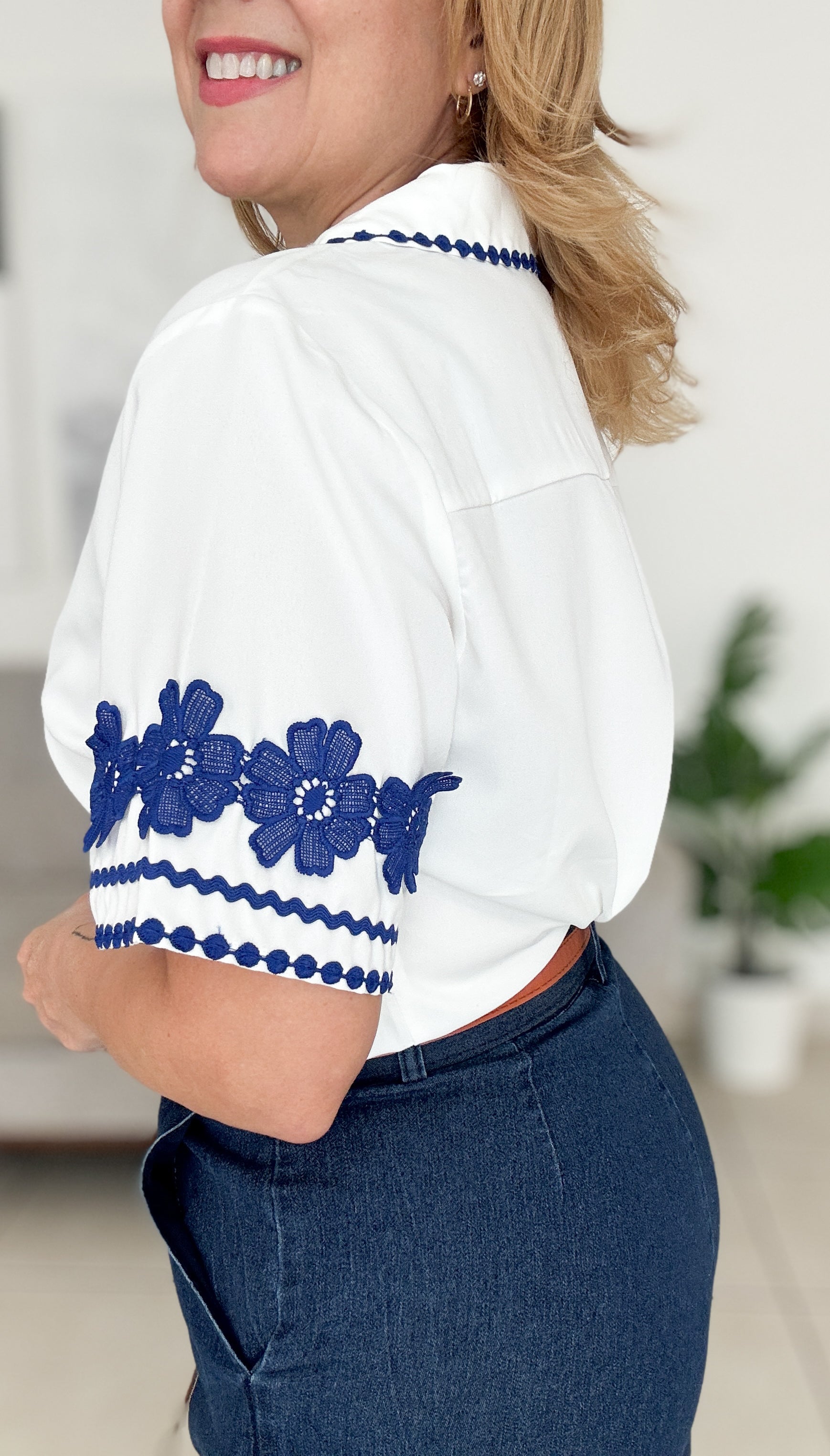 . White & Blue Embroidery Top